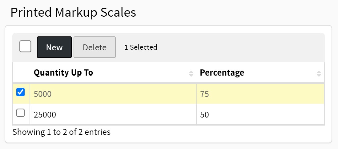Markups can be one or more scales that will be used to markup the cost of printed or blank Stock.