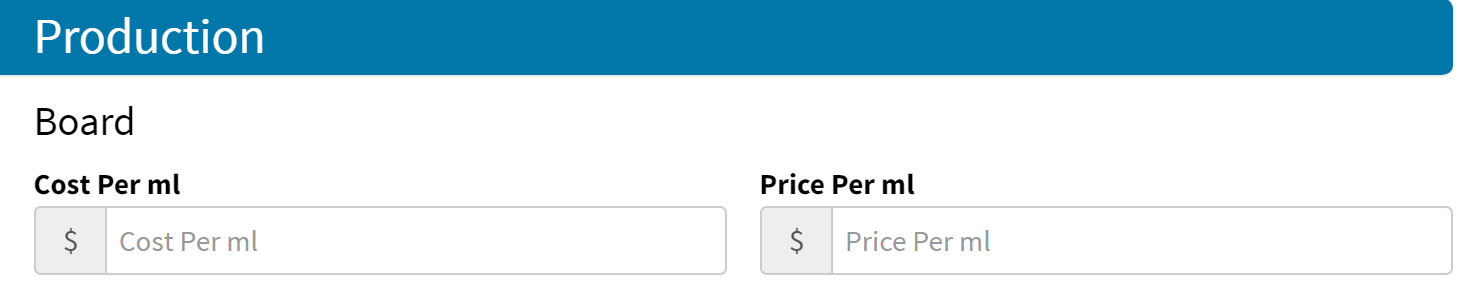 | Price Per ml | Enter value for the Price Per ml of ink. |