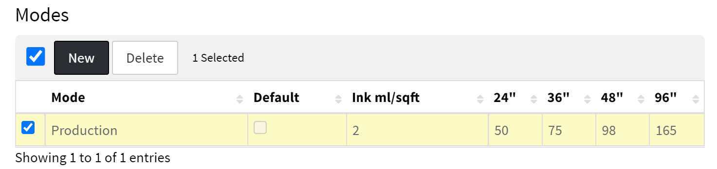| Default | Select box to set mode as default for this printer. |