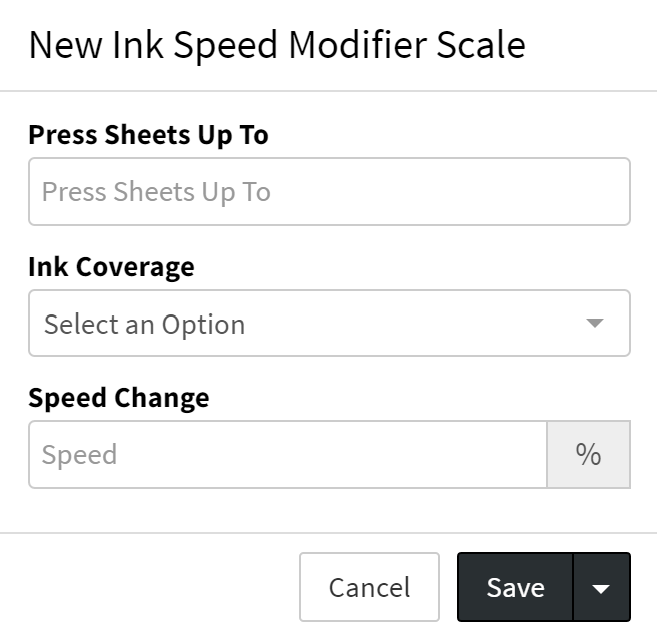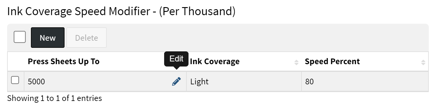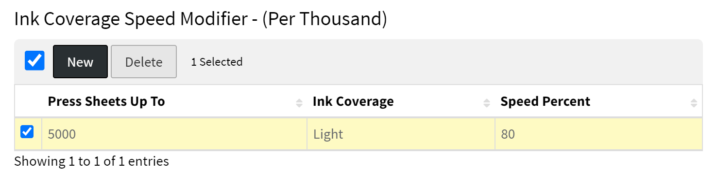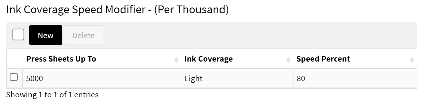 2. Select {New} under Ink Coverage Speed Modifier. A New Ink Speed