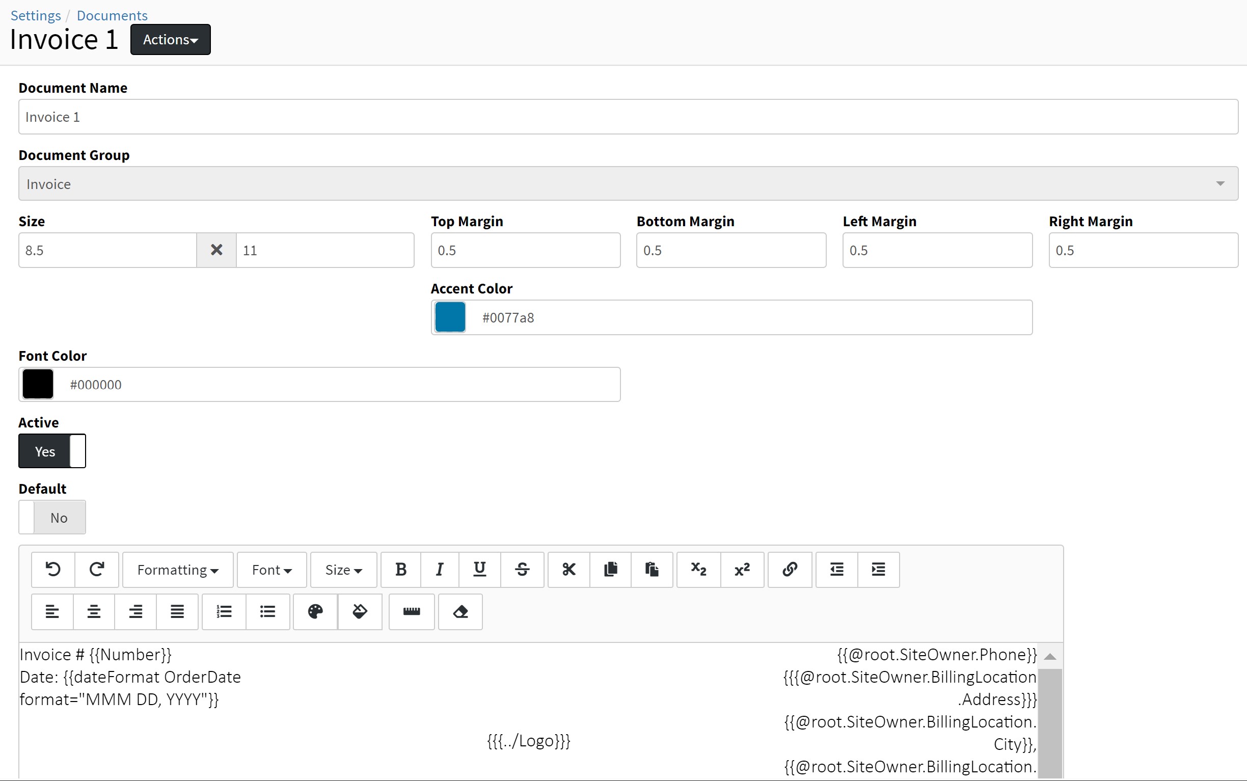 Click Actions in the top right corner of the Document Edit screen.