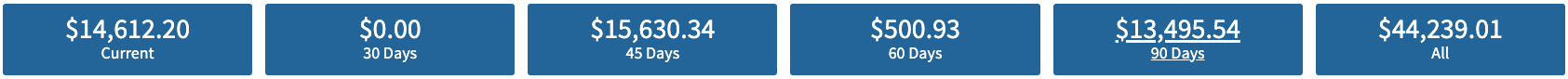 Accounts Receivables include any order that is posted but still has a balance owing or owed. They are organized by the length of time they have been posted.
