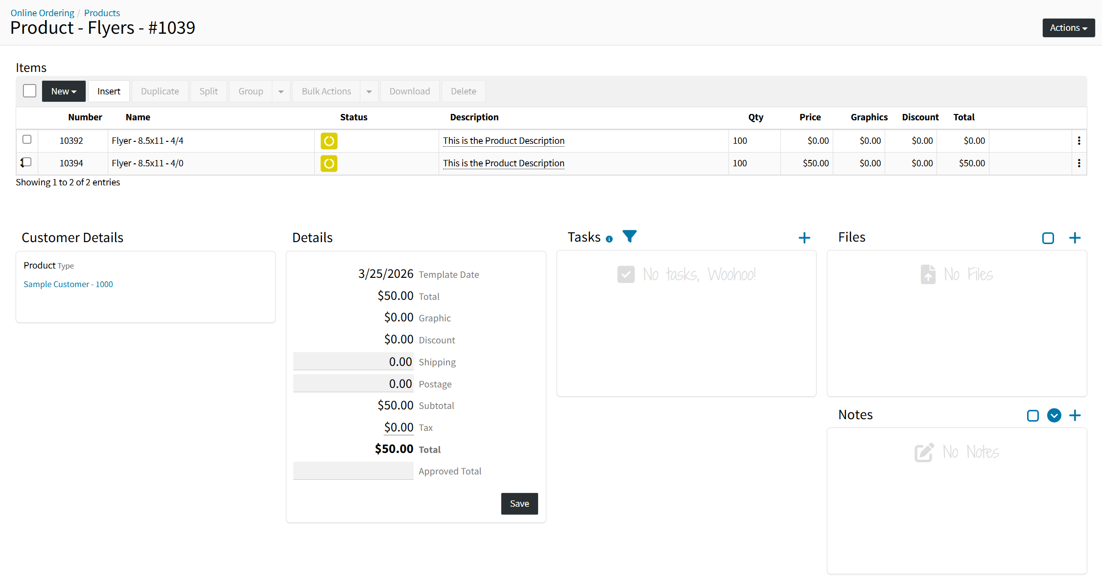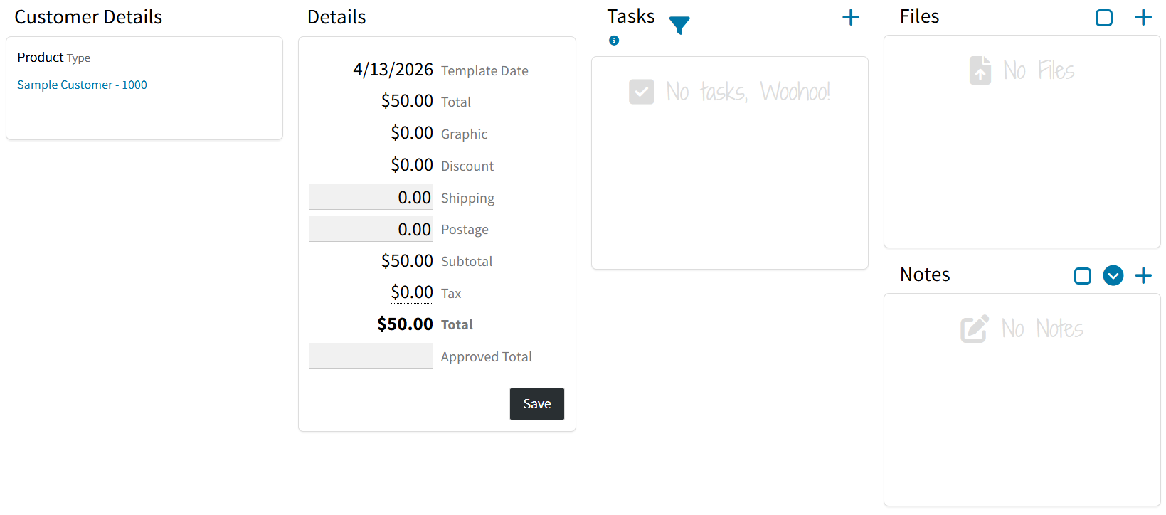 | Tasks | This shows any tasks for this order. To edit, add, or delete Tasks. (See General-Tasks) |
