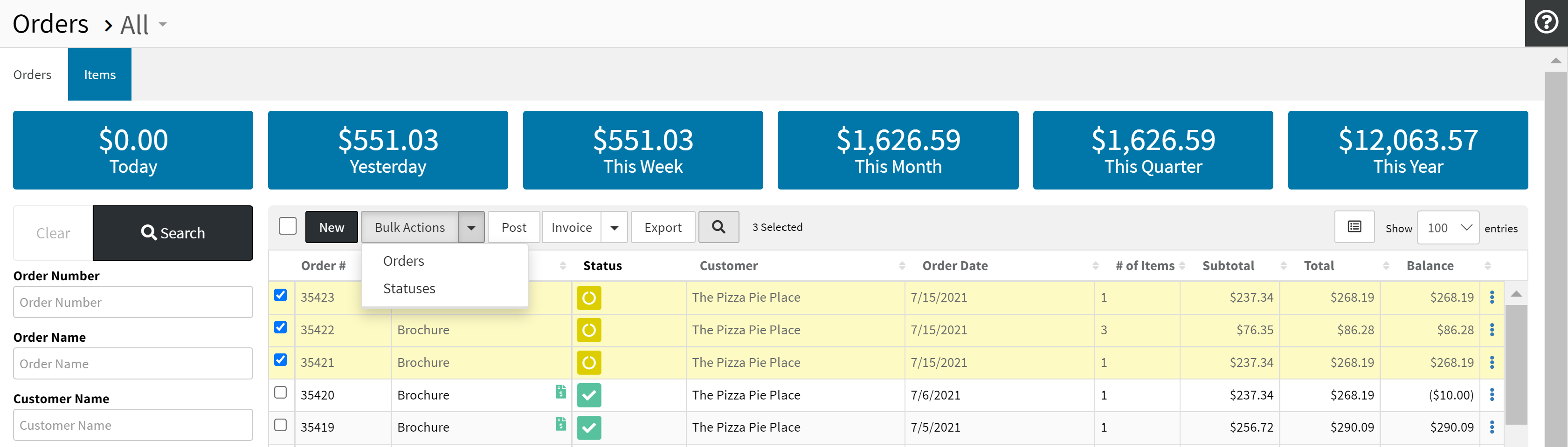 - From the Quotes/Orders page, bulk actions can be used to update: