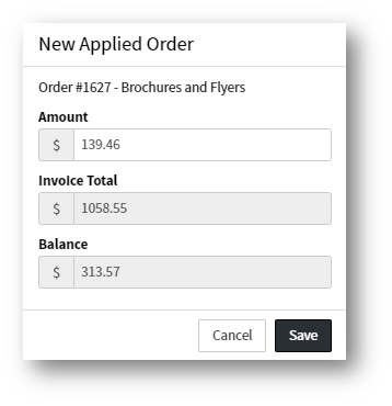 Applied Orders allows for an entry to be applied to an order.