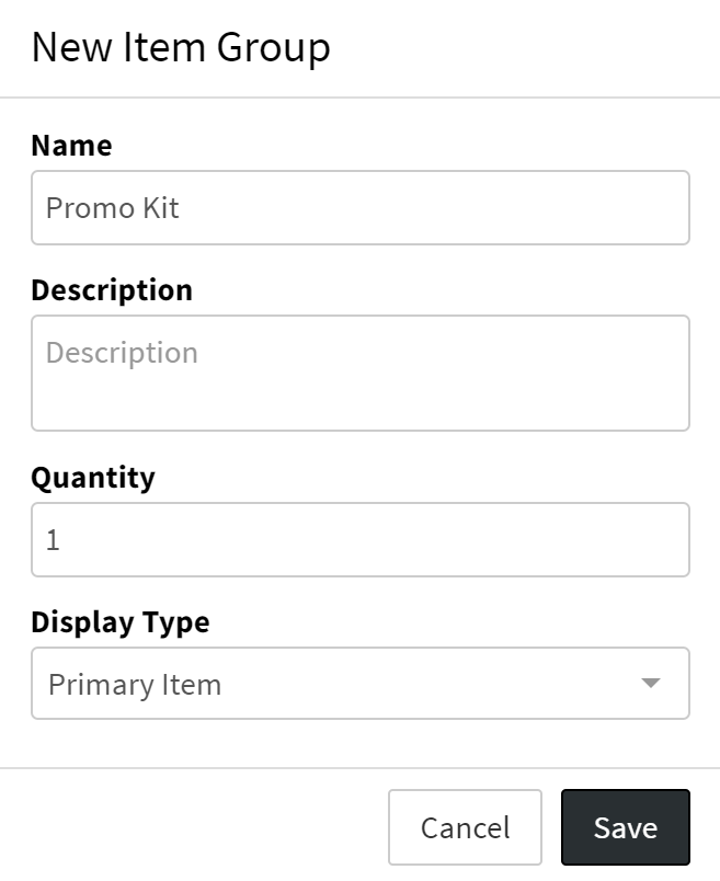 | Quantity | Enter a Quantity for the item group. All items will be updated to this quantity Note: If left blank, each item in the group will retain it's existing quantity. If an item is added after the group is created, the new item will not change to the group's primary quantity. Groups online will only display the primary quantity and will update all items to be that same quantity. |
