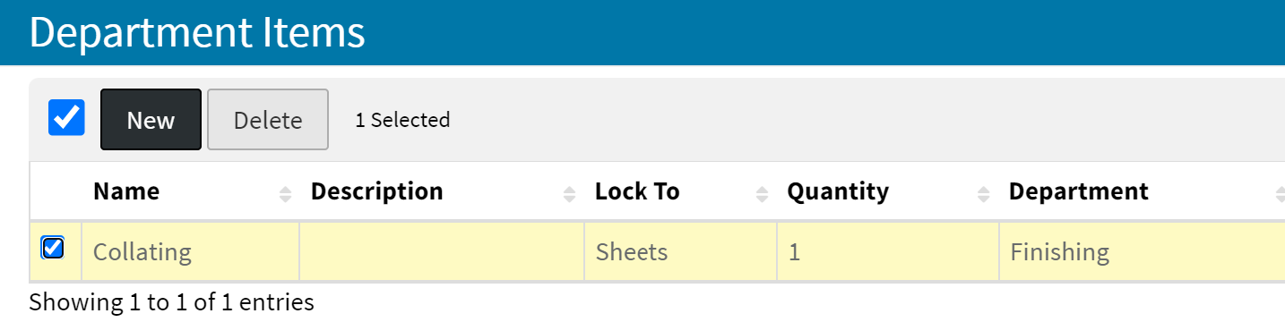side. All entries can be deleted by checking box to left of {New} under Department Items.