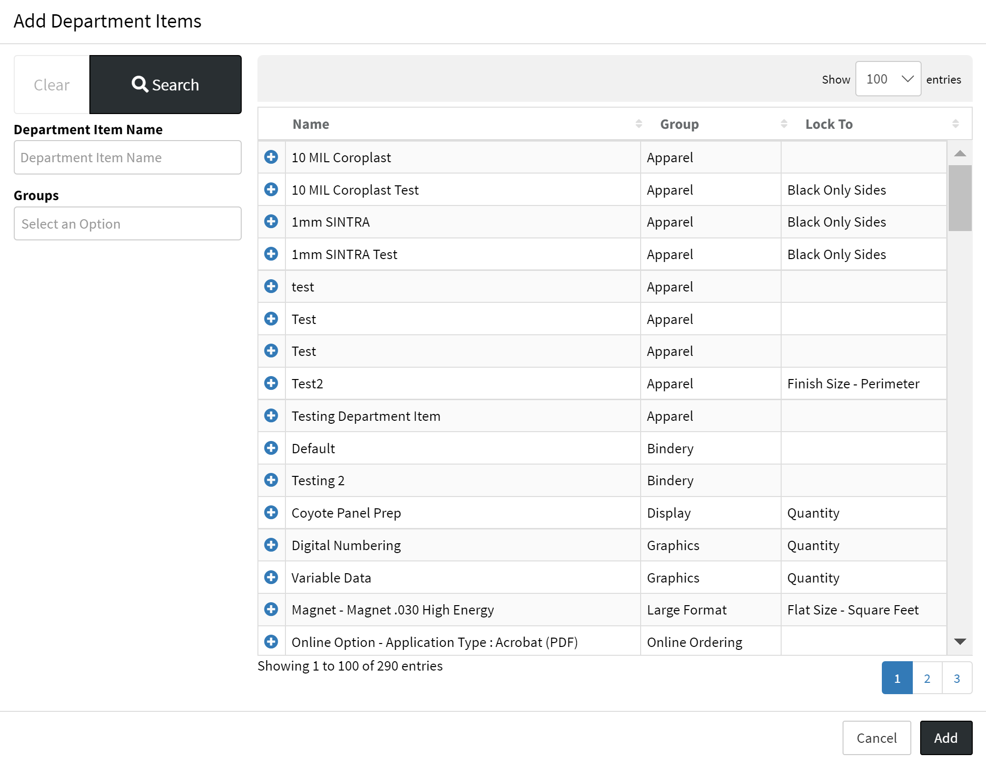 4. Select {Add}. A results window will pop up to indicate the department items have been