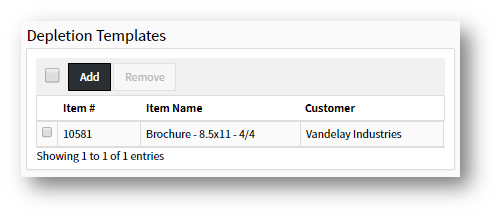 3. Select {Add}. The item will appear in the Depletion Products table.