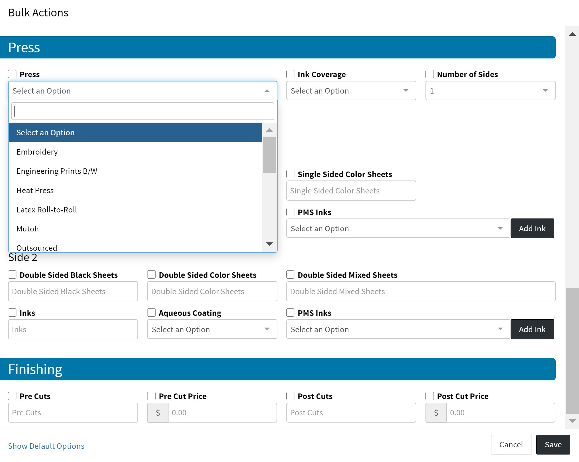 Once it has been determined which press should be used for the job, the remaining items can be deleted. The quote can then be converted to an order by selecting {Convert to Order} from the Actions menu drop-down.