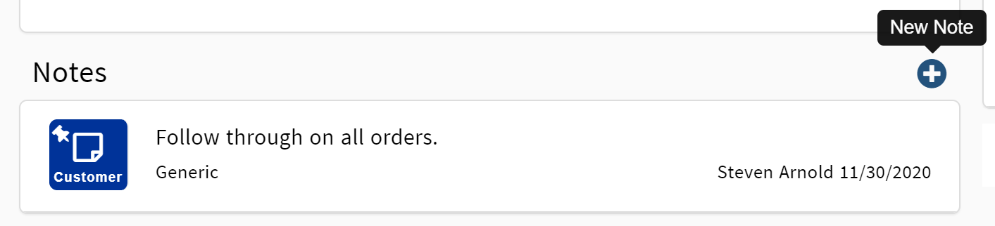 - A Customer sticky note will copy to any order or quote for that Customer.