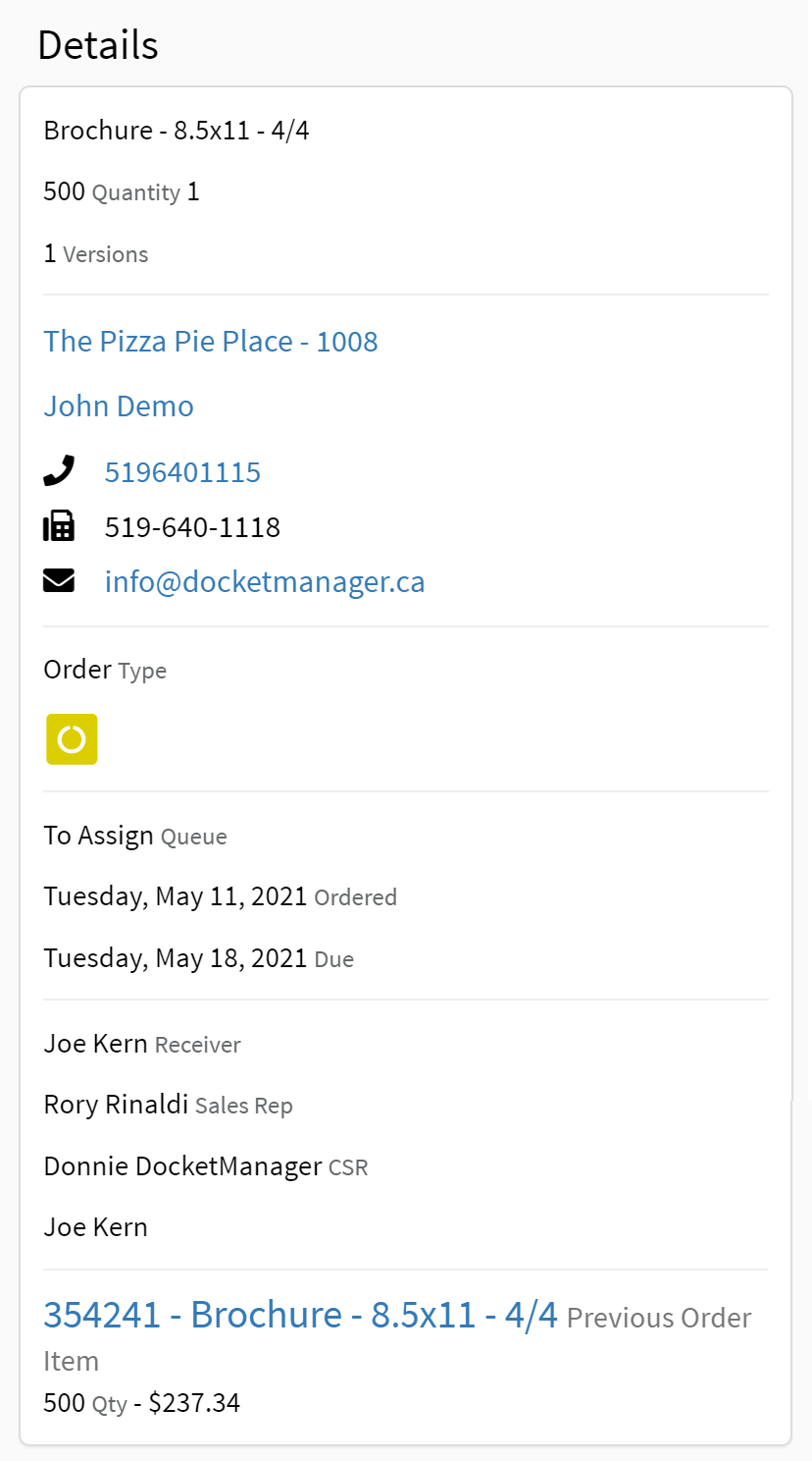 Note: Details will not display if the customer has not provided that information (e.g. Phone Number will not display if the customer did not provide a phone number) | ![]() |