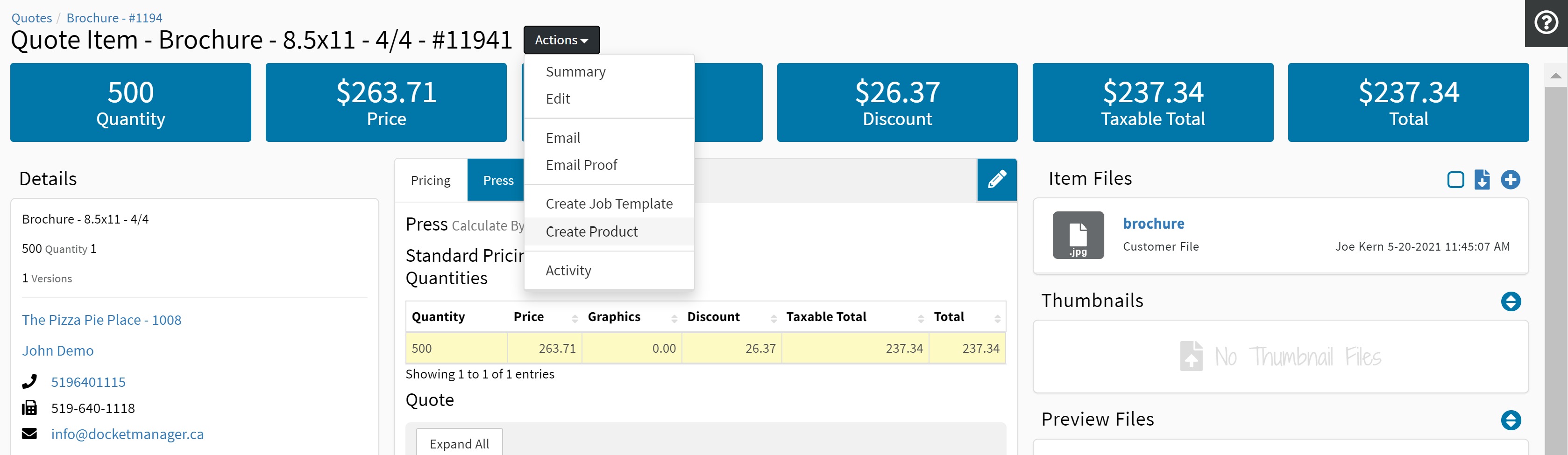 While products can be created from scratch from Settings > Products, you can also convert the specs on a quote item into a product. This is a quick way of saving the specs on a quote item for a product you may want to place on Point of Sale or an online portal.