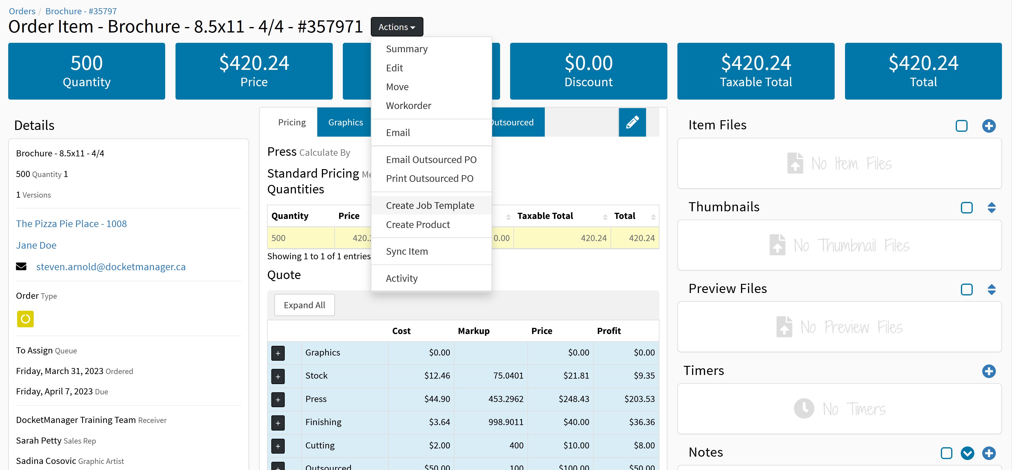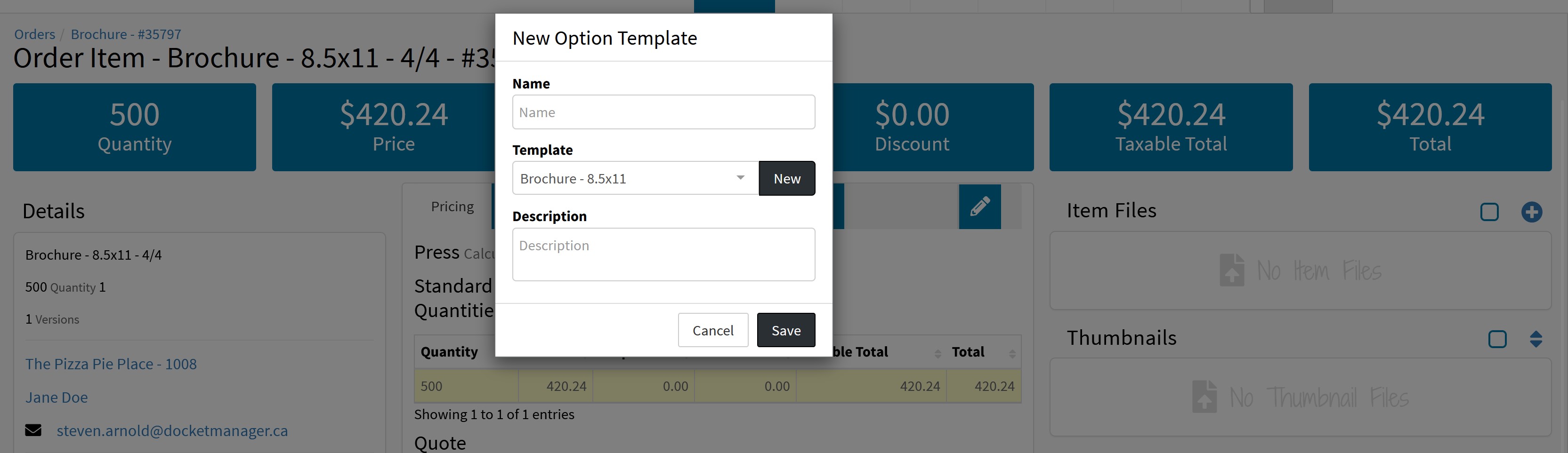 While job templates can be created from scratch form Settings > Job Templates, you can also convert the specs on a quote item into a job template. This is a quick way of saving the specs on a quote item for future use when building other items.