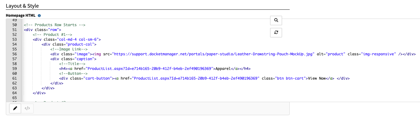 - Navigate to Settings > Online Configuration > Online Ordering > Portals > Charcoal Studio - copy > Homepage HTML