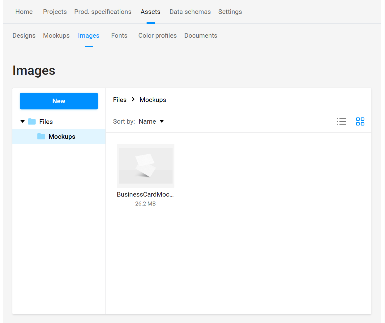 Switch between managing various assets from Designs, Images, Fonts, and Color Profiles.