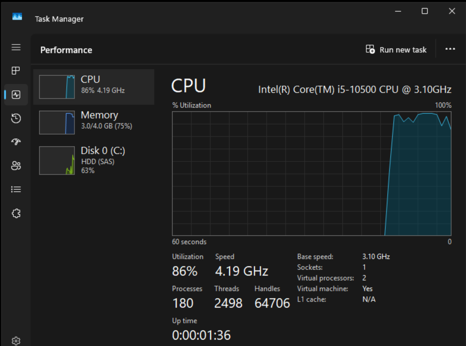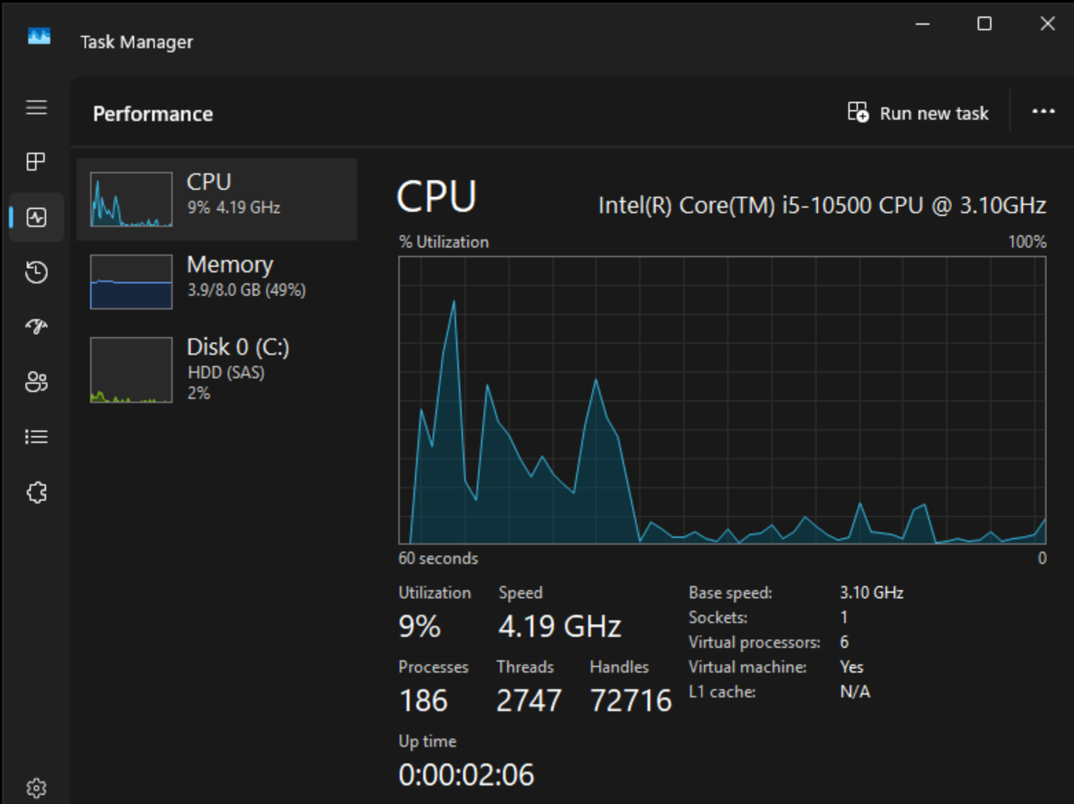 Press Ctrl + Shift + Esc → Go to the Performance tab